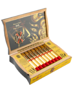 Wrapped in the distinctive golden-hued leaf that defines the Templo de Oro collection, the #8 offers a more polished and composed interpretation of the Opus X profile. The blend highlights aged Dominican binder and filler tobaccos grown at Château de la Fuente, producing a medium-to-full-bodied experience marked by cedar, cream, soft spice, and subtle earth tones.